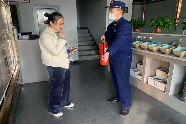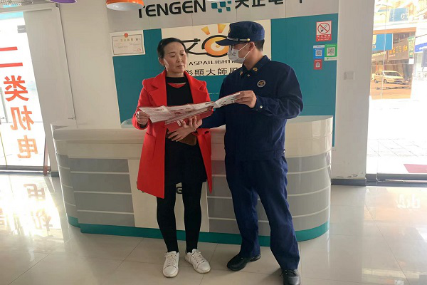 宣传过程中,消防所宣传人员走进沿街人流密集商铺,逐家发放图文并茂、内容丰富的消防宣传资料,并针对部分商户消防安全意识淡薄、消防安全条件差等特点,指导从业人员对宣传手册内容进行学习。随后结合冬季火灾事故特点,向商户和沿街群众传授了火灾的预防、扑救初期火灾的小窍门、如何自查自消身边消防安全隐患、灭火器使用方法、火场逃生自救技能等消防安全知识,并提醒商户和群众要注意用火用电安全,严防火灾事故发生。