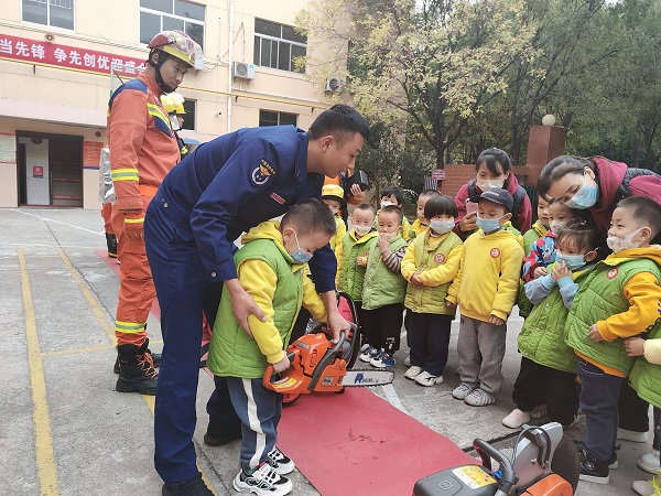 为进一步推动消防安全知识宣传普及,切实提高幼儿群体和教职工消防安全意识及基础安全常识,11月3日下午,杨凌支队开展队站开放活动,让孩子们零距离接触“火焰蓝”、感受“火焰蓝”。