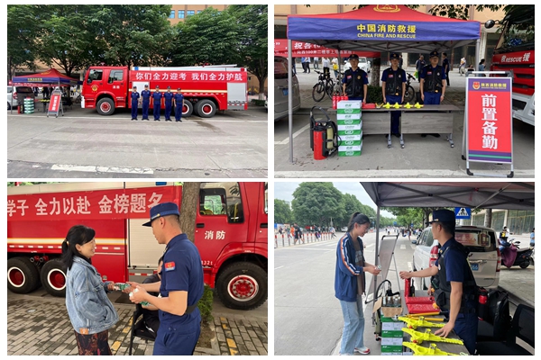 紧盯重点,创造环境。支队以高考考点为中心,组织消防宣传人员、消防志愿者、基层网格员在考场周边各大场所开展消防安全宣传活动,并通过微信群、LED显示屏等媒介高频次推送消防提示,截止目前,共发放消防宣传资料3000余册,解答受众消防咨询260余次,为高考顺利进行营造了平稳的消防环境。