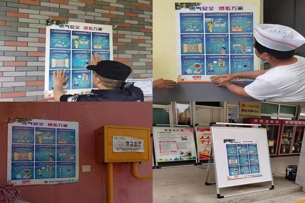 本次张贴的宣传海报为“燃气安全九提示”,内容丰富,紧贴实际,重点突出。结合消防宣传“五进”“敲门入户”活动,深入社区、农村等场所张贴“燃气安全九提示”宣传海报,积极开展燃气消防安全宣传工作。通过“面对面”讲解的方式,科普燃气灶具不合规、私接私改燃气设施、燃气泄漏、燃气软管不合规、燃气管道锈蚀等常见隐患的危害。