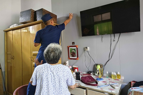 7月24日,杨凌支队组织杨陵街道消防所深入上代村,为鳏寡、独居老人免费安装烟感报警器,助力提升消防弱势群体安全环境。
