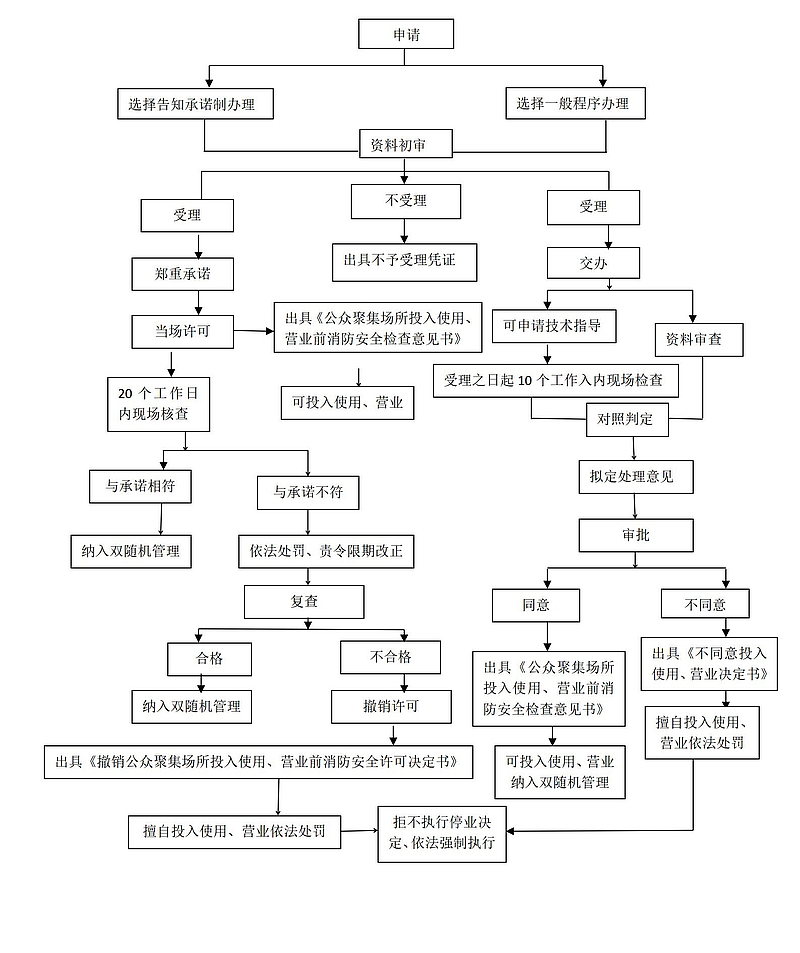 杨凌示范区消防救援支队公众聚集场所投入使用、营业前消防安全检查权利流程图