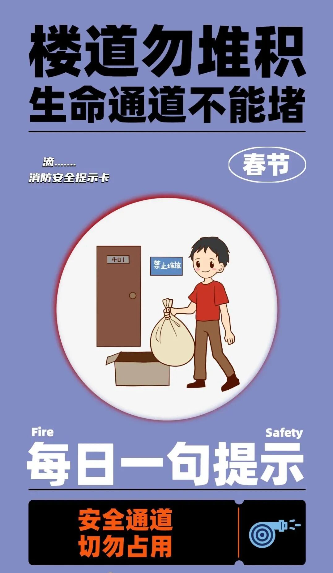 小区内楼道属于公共消防通道,也是生命通道。楼道堆放的杂物多为木制品、纸制品等等,都是可燃物,稍遇明火就可能引起火灾。