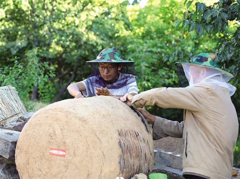 在宜君县太安镇寺坪村,新农人陈明涛正在收集已成熟的蜂蜜(资料照片)。 受访者供图