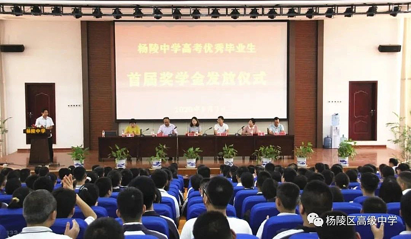 9月3日下午,杨陵中学在毓秀厅举行首届优秀毕业生奖学金发放仪式。杨陵区政府副区长夏惠娟出席并讲话。区教育局班子成员参加仪式。