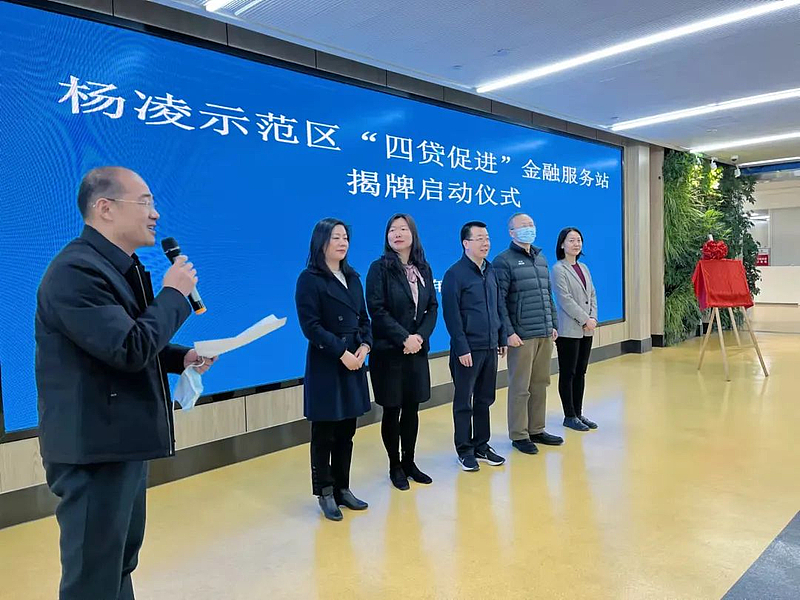 2022年2月22日,杨凌示范区“四贷促进”金融服务站在行政服务大厅正式挂牌启用。示范区党工委委员、管委会副主任程津庆出席活动并为“四贷促进”金融服务站揭牌。
