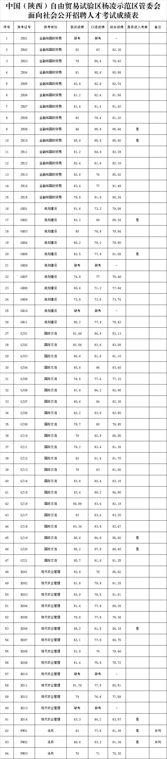 附件:中国(陕西)自由贸易试验区杨凌示范区管委会面向社会公开招聘人才考试成绩表