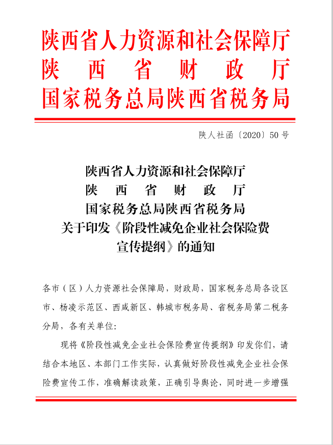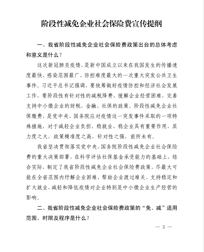 关于印发《阶段性减免企业社会保险费宣传提纲》的通知