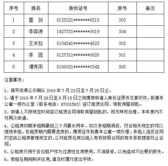 青年公寓摇号结果公示—(第三批)