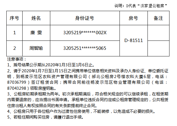 陕西森工缘智能科技有限公司申请公租房配租结果公示-企202002