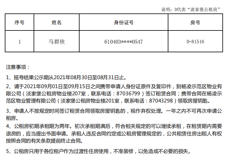 公租房摇号配租结果公示-202110