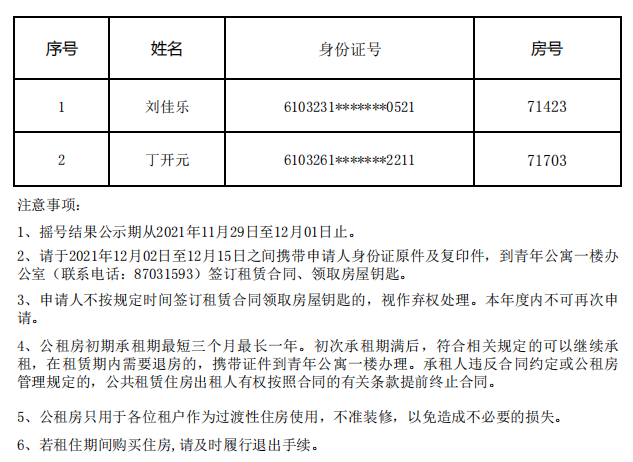 青年公寓摇号配租结果公示—202120