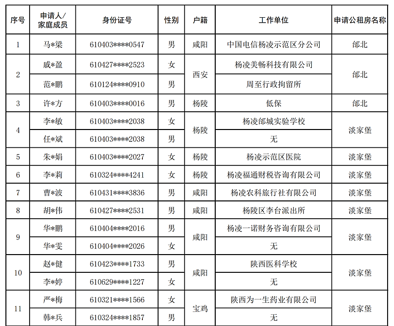 杨凌示范区公租房申请人员名单-202115