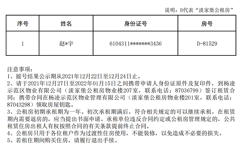 陕西康奥文化体育发展有限公司申请公租房配租结果公示-企202115