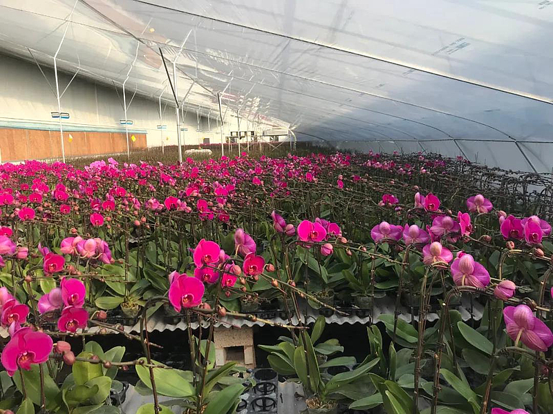 蝴蝶兰花期一般在春节前后,而眼前5万多株蝴蝶兰已经亭亭玉立,含蕊怒放,煞是好看。王书侠介绍,今年基地有30多个蝴蝶兰品种,成花量将达到18万株,早在10月份这些花就已被预订一空。