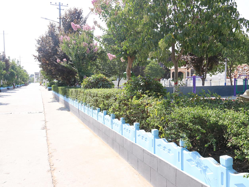 从城区来到乡村,满目皆绿,花草的香味弥漫在空气中,家家户户门前围着特色栅栏,里面种着花草、蔬菜,墙上描绘着欣欣向荣的乡村风景,污水管网已经修通……一村一落皆成美景,创建出了一个绿化、美化、净化、亮化的美丽乡村。
