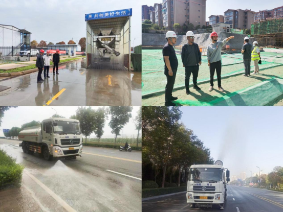 区住建局、城市管理执法局检查工地扬尘管控落实情况及进行雾炮作业、路面冲洗作业