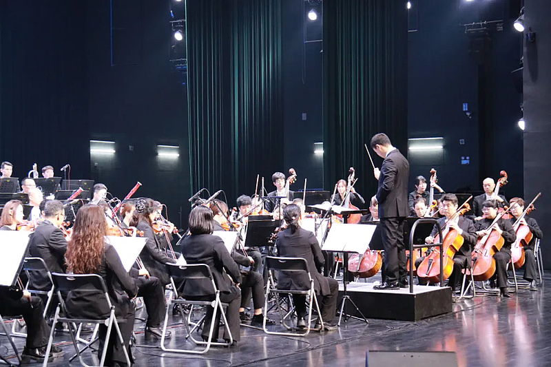 音乐会在《山丹丹开花红艳艳》欢快的旋律中拉开帷幕,随后,《白毛女选段》《田园交响曲》等优美乐章相继奏响,为观众带来视听盛宴。《秦岭回响》等极具陕西地域特色的曲目,以其独特的艺术魅力引发全场共鸣,赢得了现场观众的热烈掌声。演出尾声,全体演员与现场观众共同唱响《歌唱祖国》,激昂澎湃的歌声响彻剧院每个角落,将整场音乐会的气氛推向最高潮。