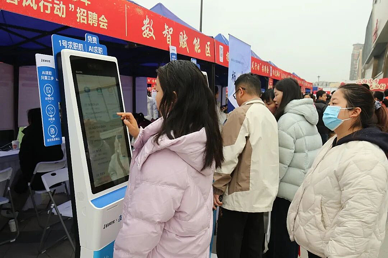 其中,数智赋能专区是本次招聘会亮点。现场推出的AI刷脸岗位推荐服务,求职者只需通过人脸识别、填写求职意向信息,系统就能快速精准匹配适合岗位,有效提升了求职效率与匹配精准度。