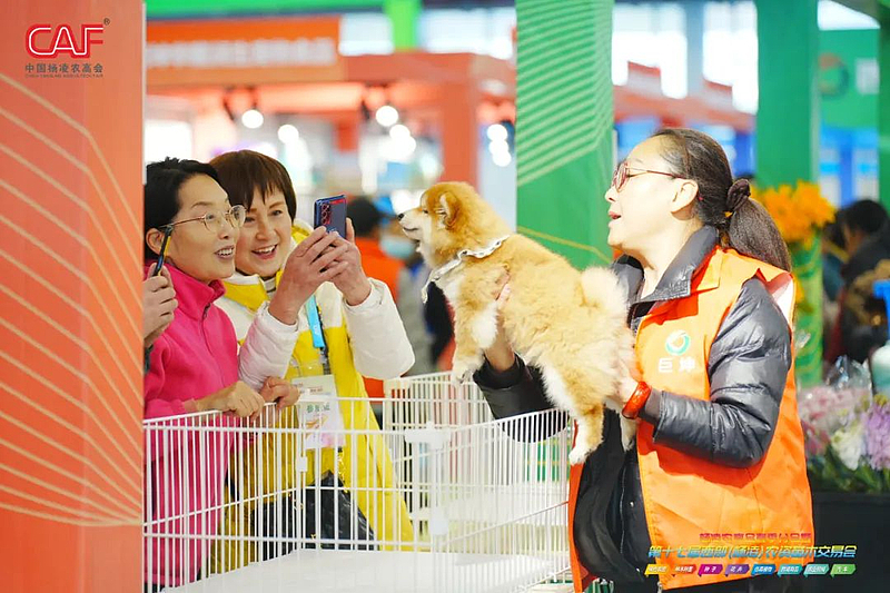 在西安巨坤花卉宠物市场展位前,工作人员正忙着为群众介绍萌犬饲养注意事项。本届双交会首次设立了花卉及仿真花卉展区,邀请西安巨坤花卉宠物市场等多家企业参展。