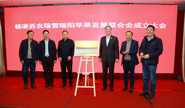 12月28日,“杨凌西农瑞雪瑞阳苹果发展联合会”成立大会在杨凌召开,陕西省政协副秘书长张宏,杨凌示范区管委会副主任袁鸿马,西北农林科技大学钱永华副校长,国家苹果产业体系首席专家、西北农林科技大学霍学喜教授为“杨凌西农瑞雪瑞阳苹果发展联合会”揭牌。