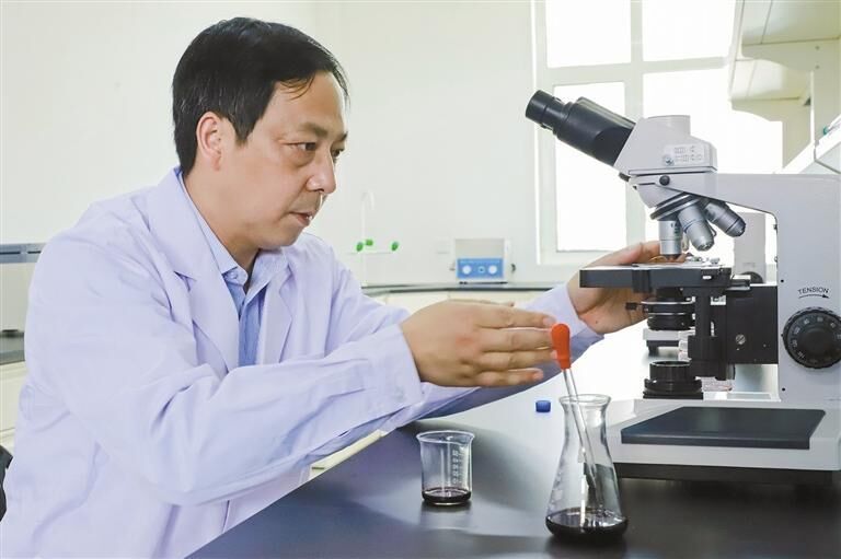 6月19日,西北农林科技大学宁夏贺兰山东麓葡萄酒试验示范站站长陶永胜在进行科研实验。 本报记者 刘坤摄