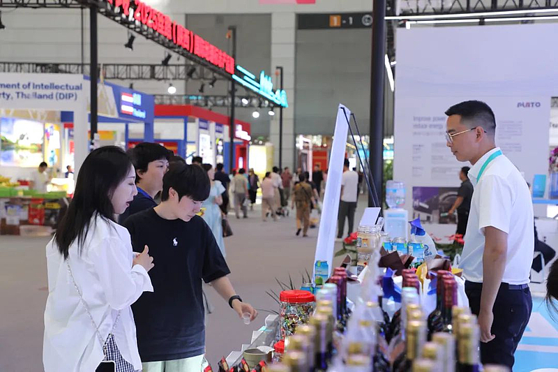 走进展区,海蓝色的格调让人眼前一亮,“国际范”十足。展台前人头攒动,上合国家的各类农产品琳琅满目,吸引众多参会群众驻足停留,询问、了解产品。