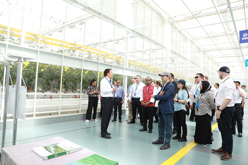 作为上合组织农业基地重要实训基地之一,杨凌智慧农业示范园里集中展示了“高科技、高效能、高质量”的现代农业范式。在这里,奶油生菜年收12茬,产量达传统种植15-20倍;串收番茄采收期超9个月;在各色光谱灯光调控的植物工厂里,石斛、甜菜、辣椒等作物实现全自动栽培。各国嘉宾在这里边走边看,深深地被杨凌现代农业科技所吸引。