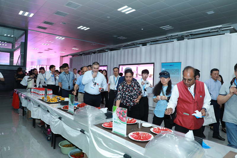最后,各国嘉宾来到杨凌国际猕猴桃创新产业园,参观现代化的猕猴桃种植基地、果品储藏分选包装区,品尝了猕猴桃及其深加工产品,并饶有兴趣地了解了猕猴桃“增氧控温”技术、品种培育,以及产业发展模式。