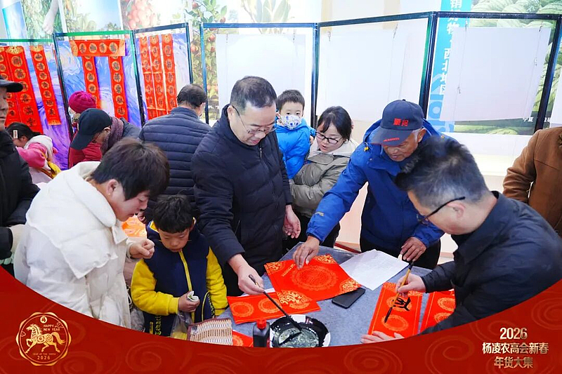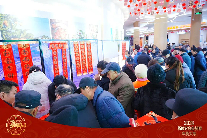 锣鼓铿锵震全场。翰墨飘香暖新春。1月30日上午,杨凌农高会A馆(农品汇)及会展广场彩灯高悬、人声鼎沸,“2026杨凌农高会新春年货大集”火热开集。据悉,本次活动将持续至2月14日,为期16天,为市民打造集购物、民俗体验、科普互动、汽车消费于一体的新春盛会,让浓浓的年味与满满的幸福气触手可及。