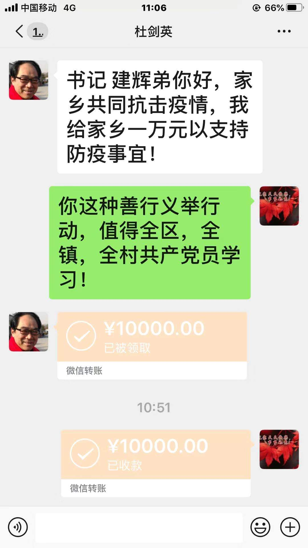 在道德模范董映侠的影响下,陕西万强集团董事长杜剑英也为揉谷镇权家寨村开展疫情防控工作捐款一万元。揉谷镇太子藏村70岁老党员张平也积极响应,为一线执勤人员捐赠桶装水73桶,并亲自将水送往执勤点。