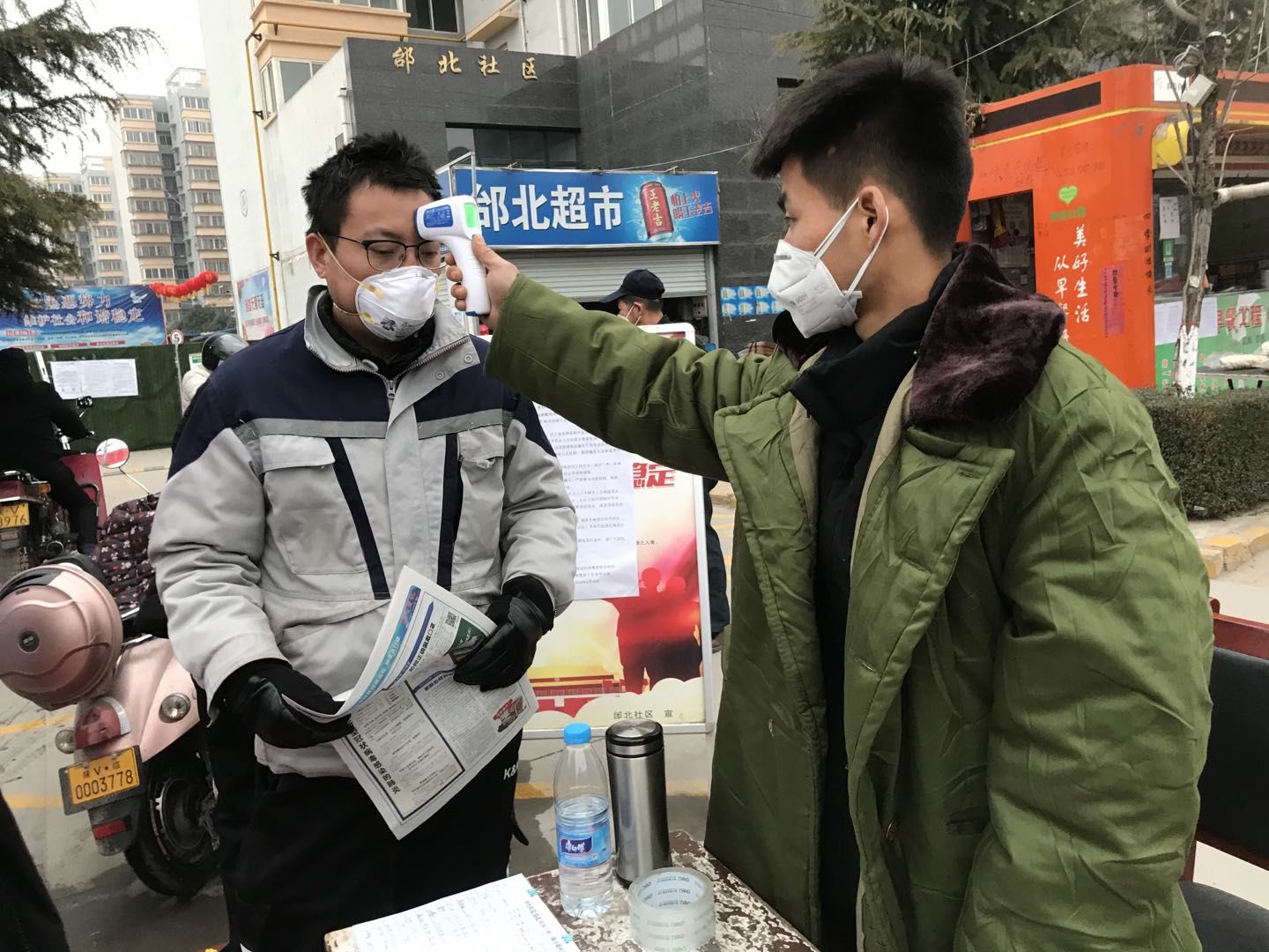 记者来到李台街道邰北社区检查点看到,工作人员对进出小区的人员逐一测量体温,登记信息。戴着口罩的居民手提刚买的东西,匆匆回家。