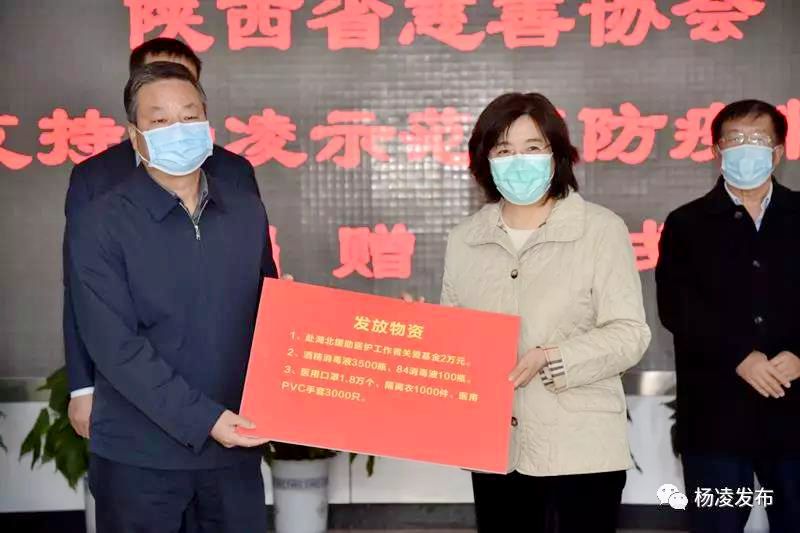 3月5日,省慈善协会在杨凌举行抗击新冠肺炎疫情防控物资捐赠仪式,为示范区捐赠了总价值71.993万元的防疫物资。示范区党工委书记、示范区应对疫情工作领导小组组长李婧出席捐赠仪式并向示范区医院发放受赠物资。省慈善协会常务副会长李荣杰代表省慈善协会捐赠并讲话,示范区党工委副书记、管委会常务副主任、示范区应对疫情工作领导小组组长李九红代表党工委管委会接受捐赠。示范区管委会副主任、示范区应对疫情工作领导小组副组长董立民致辞。省慈善协会秘书长卢宗让出席。示范区慈善协会会长刘怀省主持。