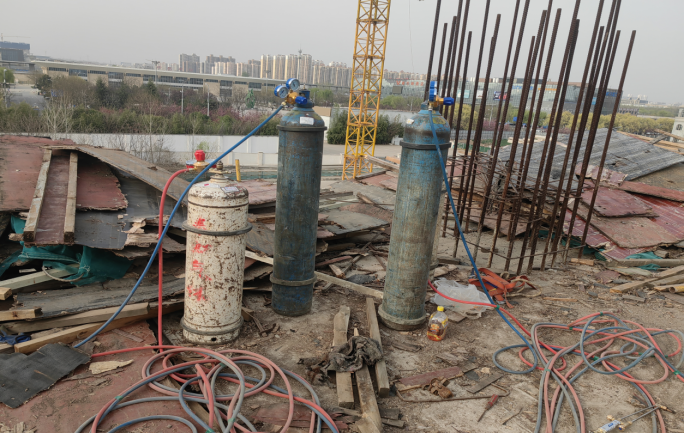 杨陵区某工地动火作业人员未经审批在楼顶进行动火作业。