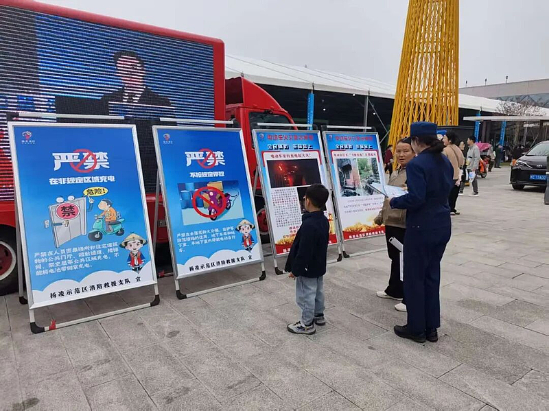 靶向宣传:精准滴灌拧紧“安全阀”。针对展会人流量大、群众消防需求多元的特点,支队在展馆核心区、人流密集区设置固定消防咨询服务台,结合农高会场景特点,重点围绕“电线短路、煤气泄漏、电动自行车违规充电”等常见火灾风险,通过“面对面讲解+互动答疑”模式,向参展群众、客商及工作人员普及消防法律法规、公共应急常识。