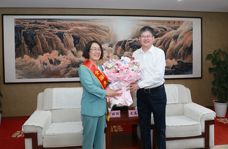 4月29日,杨凌示范区党工委书记史高领会见刚刚赴京参加庆祝中华全国总工会成立100周年暨全国劳动模范和先进工作者表彰大会载誉归来的全国先进工作者黄丽丽,代表党工委、管委会向黄丽丽表示热烈祝贺,并向全区广大劳动者致以节日的问候。