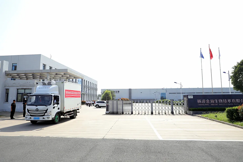 7月25日,杨凌金海生物技术有限公司出口口蹄疫疫苗灭活抗原至巴基斯坦发货仪式举行,示范区党工委委员、管委会副主任马江涛宣布发车。