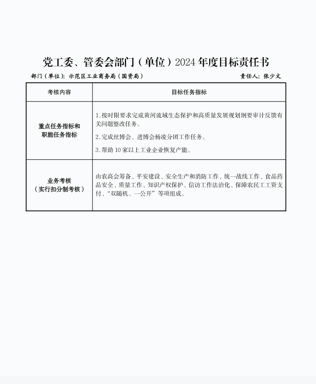 杨凌示范区工业和商务局(国资局)2024年度目标责任书