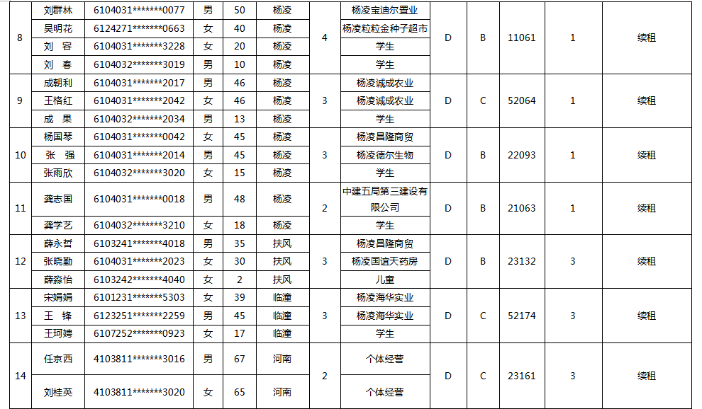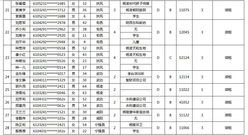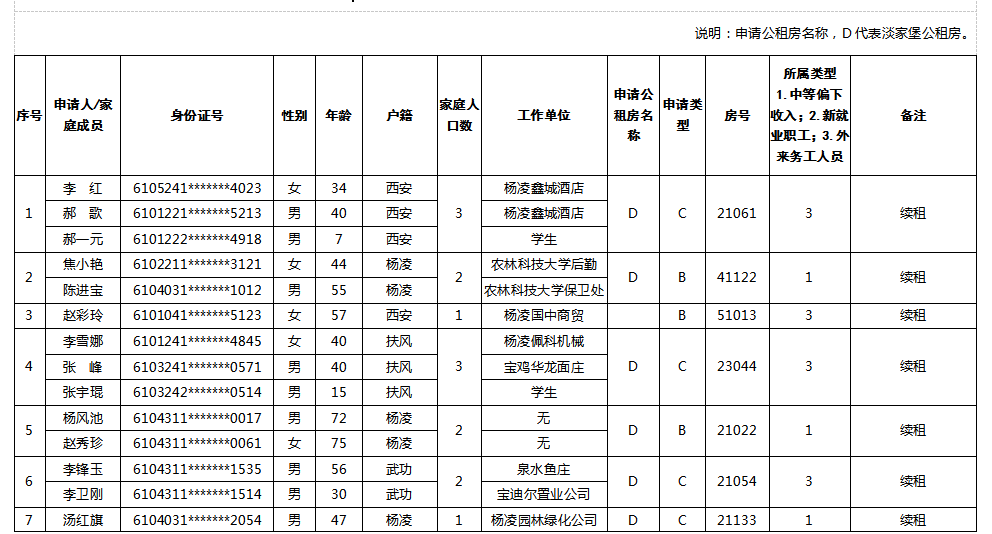 杨凌示范区公租房申请续租人员名单-201801